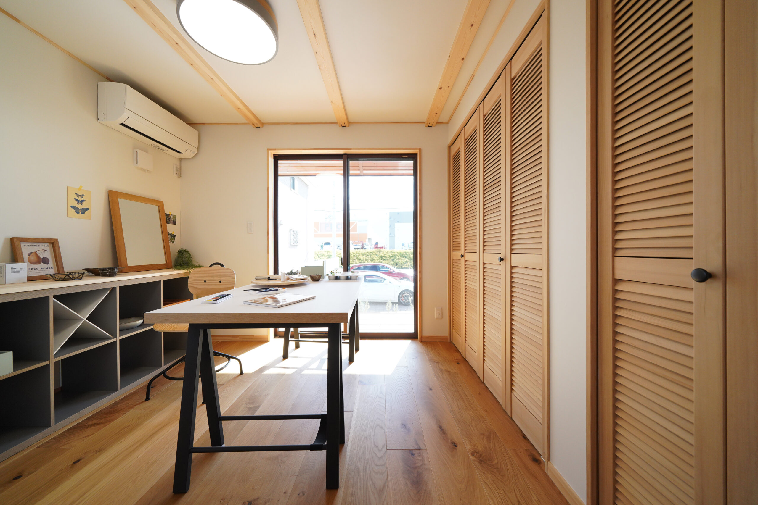 室内からウッドデッキまで視線と動線が伸び、光と風が巡る。“家の中で外を楽しむ”発想で、日常にアウトドアの楽しさを取り込みます。